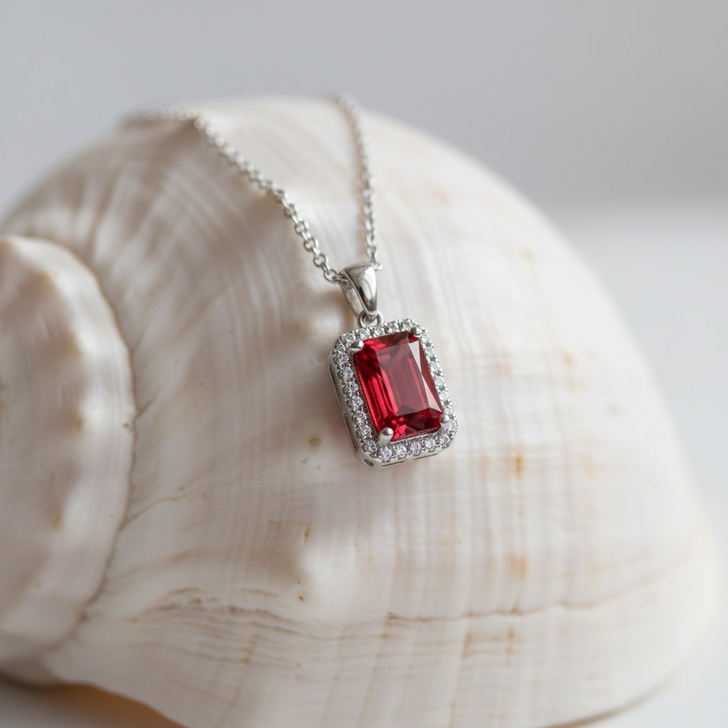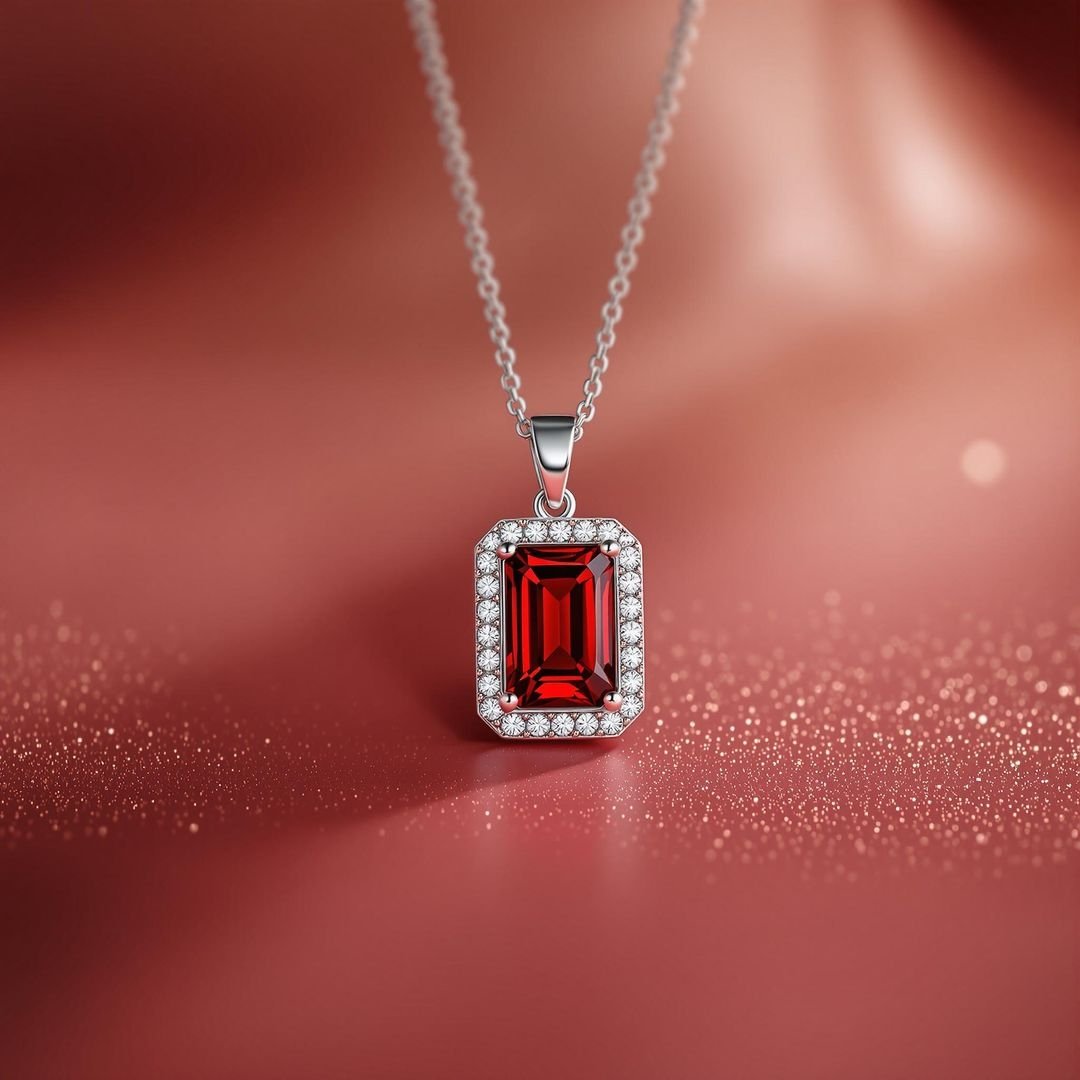 Dazzling sterling silver pendant showcasing a deep Garnet gemstone at its heart, beautifully accented with brilliant CZ stones.